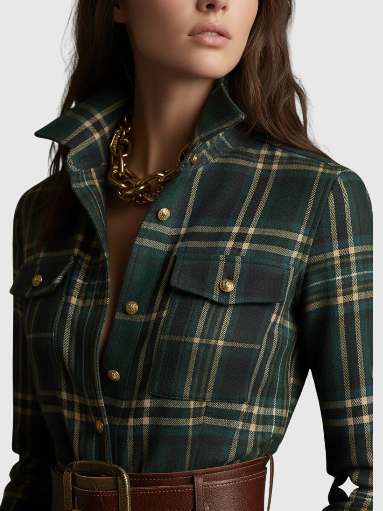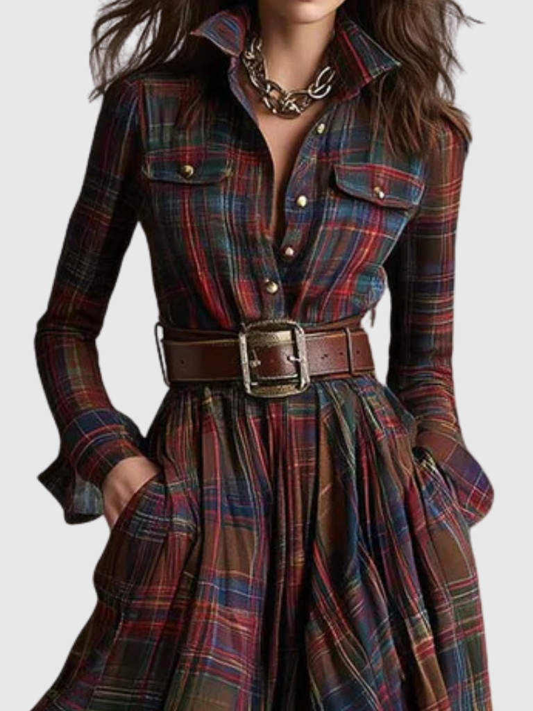 Timeless Style: Vintage plaid with ethnic-inspired tones for an elegant edge.